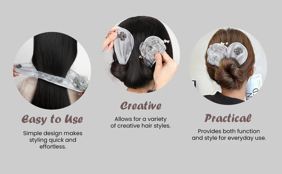 VERSATILE HAIR SOLUTION: More than just a tool for perfect buns, this accessory is adaptable for various occasions. Whether you're attending a casual outing, a professional meeting, or a glamorous party, it enhances your outfit and hairstyle. Its versatility makes it a must-have addition to your hair accessory collection.