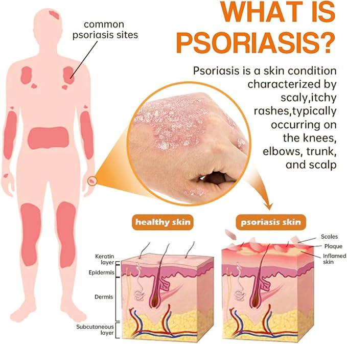 Psoriasis is a chronic autoimmune disease where the immune system of psoriasis patients mistakenly attacks normal, healthy skin cells, leading to excessive growth, accumulation, scaling, and redness of skin cells. This ultimately results in the formation of typical psoriasis plaques (they can appear anywhere but are most commonly found on the scalp, elbows, knees, and lower back).