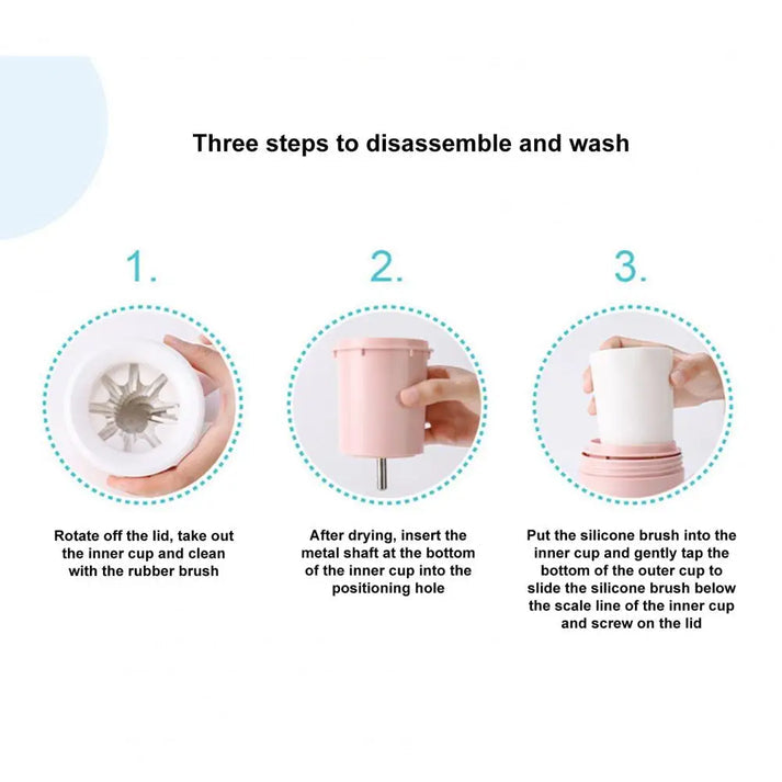 • Easy to Use: With its user-friendly design, cleaning your dog's paws becomes a quick and hassle-free task. Simply insert your dog's paw into the cup, plunge gently, and watch the dirt wash away.